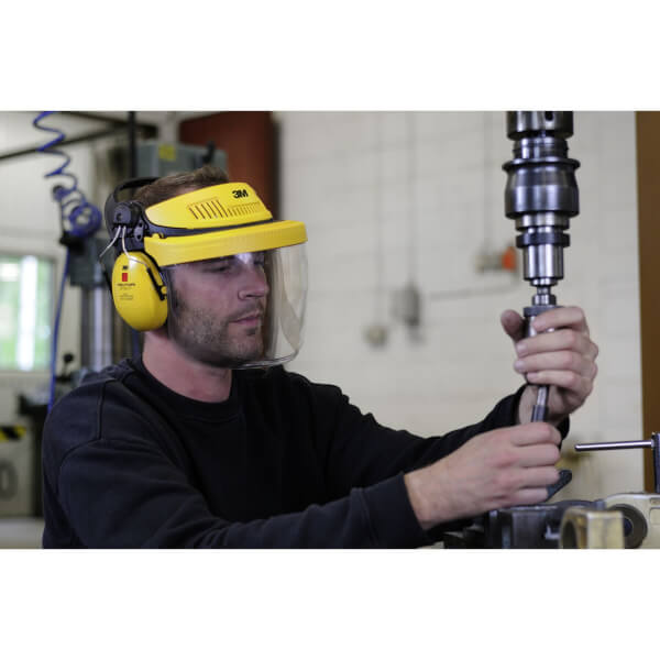 bestehend aus Kopfhalterung G500 mit Klarvisier aus Polycarbonat und 3M™ Peltor™ Optime™ I Kapselgehörschützer