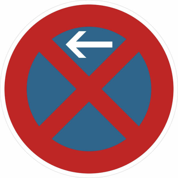 Bedeutung: Ein weißer, zur Fahrbahn weisender waagrechter Pfeil bedeutet: Anfang des verbotenen Bereichs. Wird das Schild um 180° gedreht, zeigt der Pfeil von der Fahrbahn weg und bedeutet: Ende des verbotenen Bereichs. Zwischen den beiden Schildern gilt absolutes Haltverbot