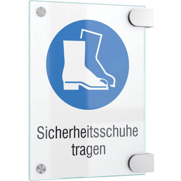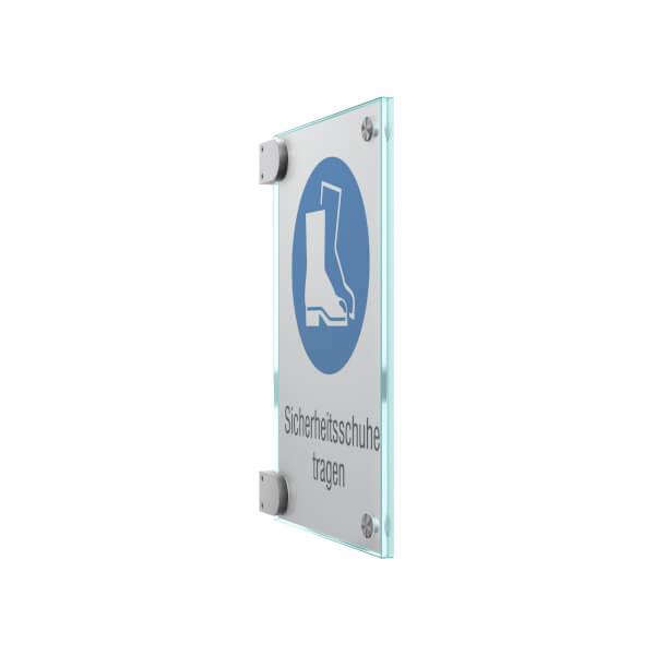 Durch die in den Raum hineinragende Wirkung sorgen Fahenschilder für eine schnelle Erkennbarkeit von beiden Seiten. Bei der 2-Scheiben-Variante wird eine Beschriftungseinlage aus Polyesterfolie (mattiert oder transparent) zwischen die Glasscheiben gelegt.