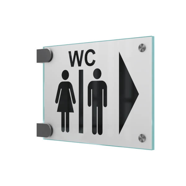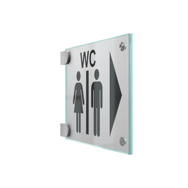 Durch die in den Raum hineinragende Wirkung sorgen Fahenschilder für eine schnelle Erkennbarkeit von beiden Seiten. Bei der 2-Scheiben-Variante wird eine Beschriftungseinlage aus Polyesterfolie (mattiert oder transparent) zwischen die Glasscheiben gelegt.