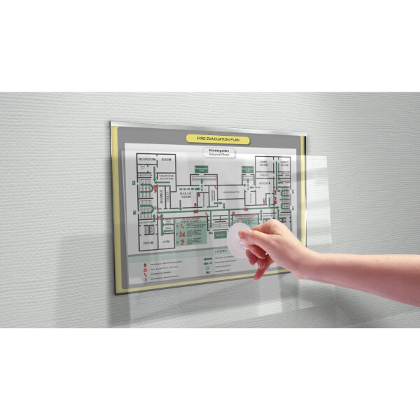 Hochwertige Materialien und eine elegantes Erscheinungsbild runden die GlasFix Serie ab und führen zu einer äußerst beliebten Schilderserie in hochfrequentierten Innenbereichen.