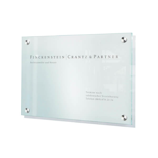 - besteht aus zwei Scheiben à 4 mm und wird - je nach Wunsch - mit Folieneinlagen, Folientext oder Digitaldruck beschriftet