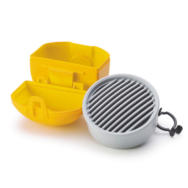 - Kunststoffgehäuse mit Gürtelclip und aufgedruckten Gebrauchsanweisungen