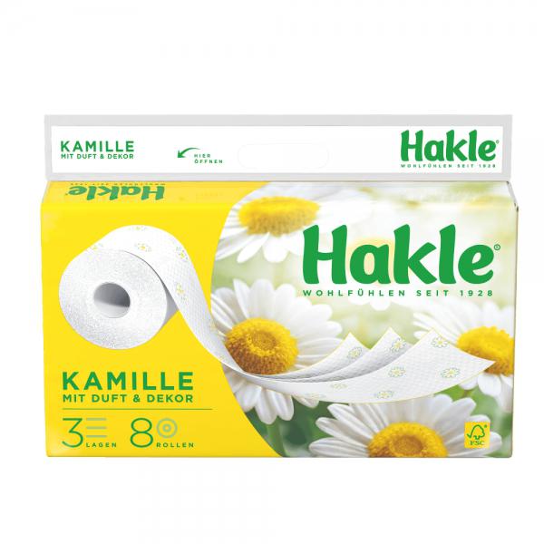 Das Hakle® Kamille Toilettenpapier bringt einen angenehm entspannenden und leichten Kamilleduft mit sich.