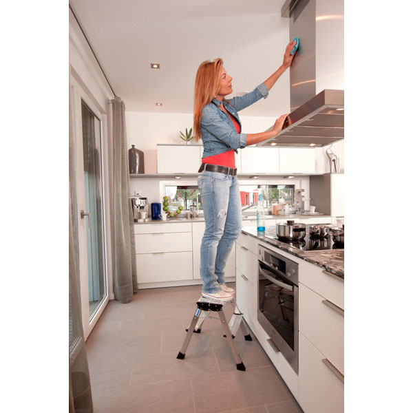 Der Doppel-KlappTritt von KRAUSE® ist jederzeit anwendungsbereit und sorgt für die nötige Sicherheit.