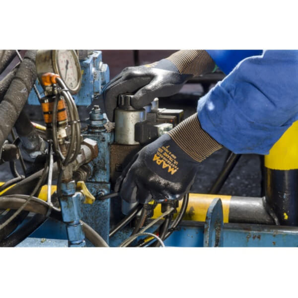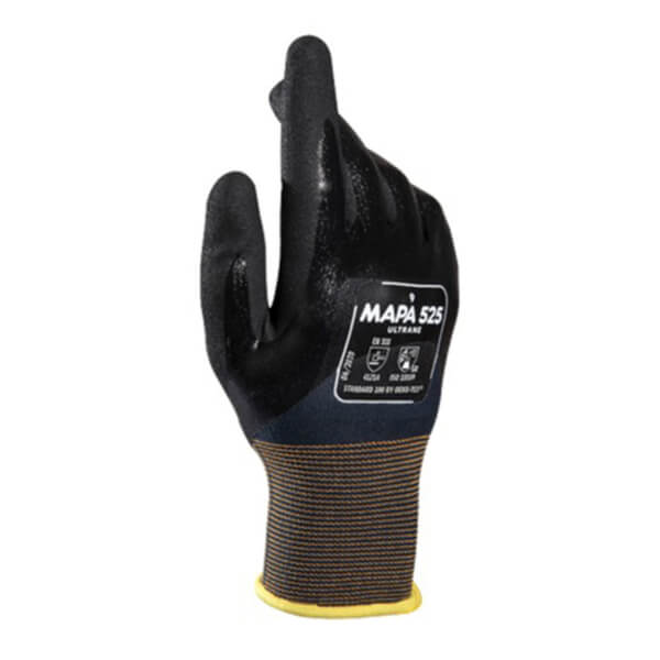 Der Ultrane 525 eignet sich sehr gut bei Arbeiten in öligen Umgebungen und bietet ein griffiges Arbeiten mit guter Fingerfertigkeit.