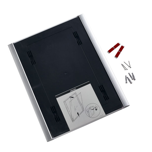 Durch die patentierte Verschlusstechnik lassen sich die Atlantic Infotafeln leicht öffnen und so die Beschriftungseinlagen aus Papier oder Folie schnell und jederzeit austauschen.