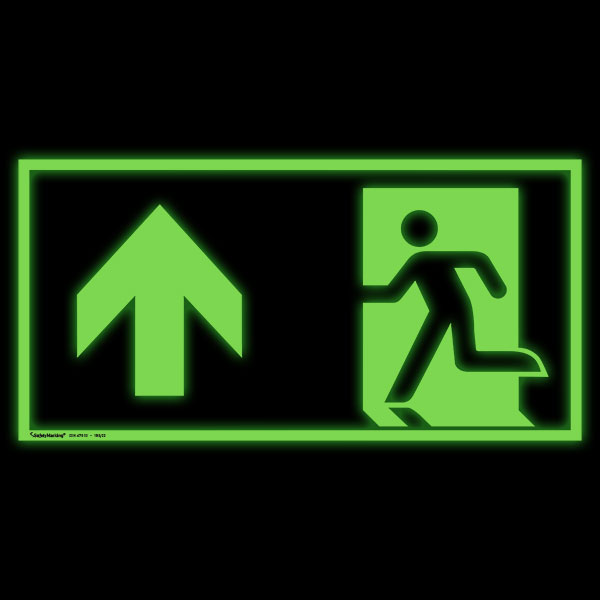 In Gefahrensituationen kann es schnell zu Stromausfällen und Rauchentwicklungen kommen, welche die Sicht im Dunkeln erheblich beeinträchtigen. Für einen schnellen und sicheren Weg zu den Notausgängen verhelfen langnachleuchtende Fluchtwegschilder, die in Kombination mit einer Grafik und einem richtungsweisenden Pfeil verlässlich zum Notausgang führen. Durch ihre langnachleuchtende Beschichtung sind sie deutlich zu erkennen und führen zum schnellstmöglichsten Ausgang. Der abgebildete Pfeil führt die Anwesenden direkt geradeaus. Das Schild ist zudem hitzebeständig bis zu +135° Celsius und leuchtet bis zu 35 Stunden lang nach.