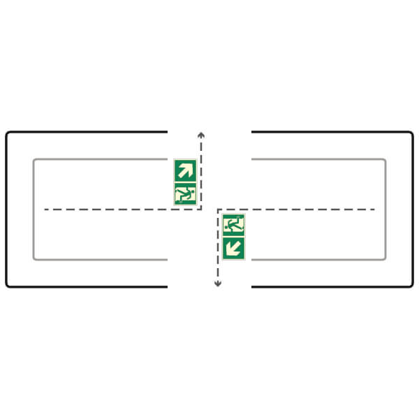 - von beiden Seiten wird der Fluchtweg in eine Richtung angezeigt (es werden zwei gegenüberliegende Fluchtwege genutzt)
