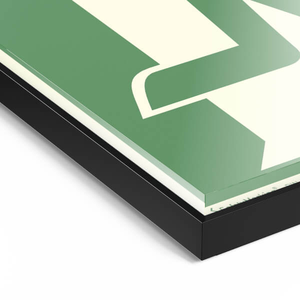 Das hochwertige Fluchtwegschild aus Acrylglas im Rahmen dient dem sicheren und zugleich modischen Wegweisen von Fluchtwegen. Wählen Sie Ihre Rahmenfarbe in schwarz oder silber.