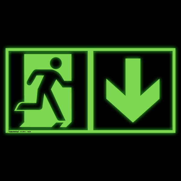 Notausgang rechts mit Zusatzzeichen - Richtungsangabe abwärts