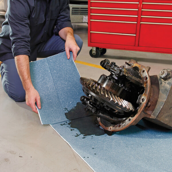 Die PIG® blue Saugrolle (heavy weight) eignet sich für flexible Anwendungen, stoppt Leckagen und nimmt Verschüttungen auf. Ideal für Öle, Kühlmittel, Lösungsmittel und Wasser.