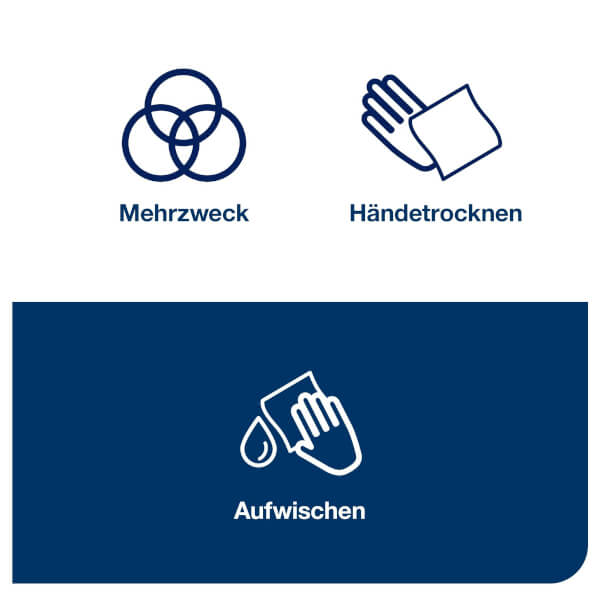 Tork Reflex™ Mehrzweck Papierwischtücher eignen sich aufgrund ihrer Stärke und ihrer hohen Aufnahme besonders gut für Wischarbeiten und zum Abwischen der Hände.