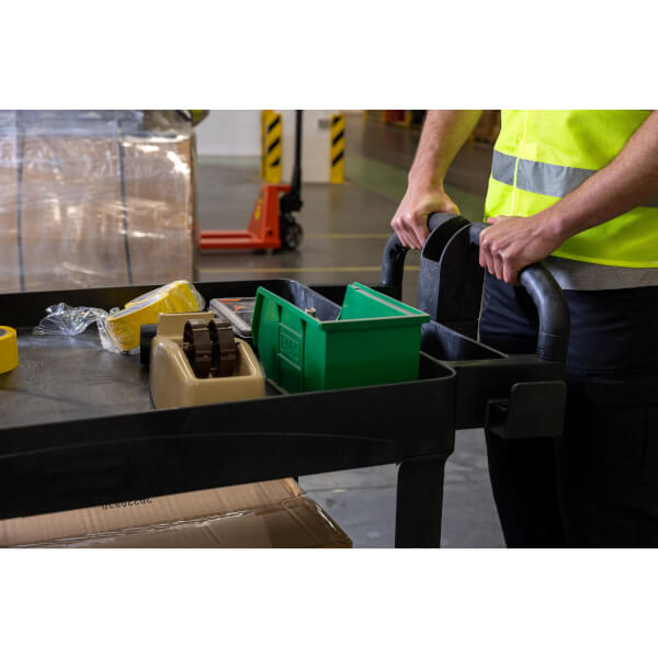 Der Rubbermaid® Transportwagen eignet sich zur sicheren Beförderung von Gegenständen und Materialien bis 226 kg.