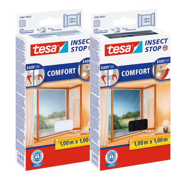 Das tesa® Insect Stop Fliegengitter Comfort lässt sich leicht anbringen und hält zuverlässig Fliegen und Mücken fern.
