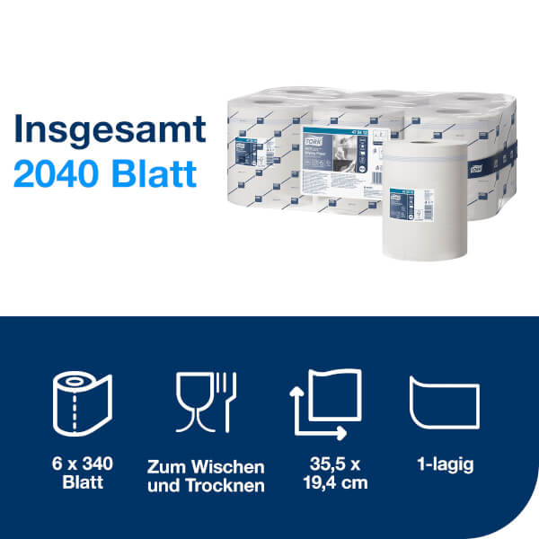 Tork Reflex™ Mehrzweck Papierwischtücher eignen sich aufgrund ihrer Stärke und ihrer hohen Aufnahme besonders gut für Wischarbeiten und zum Abwischen der Hände.