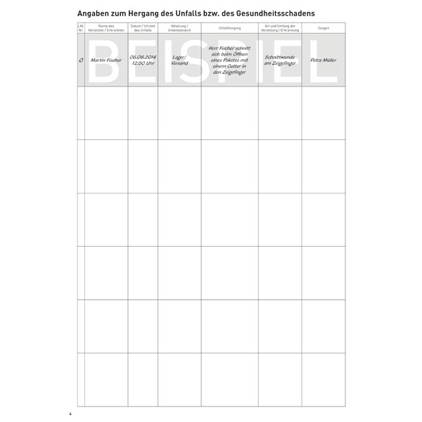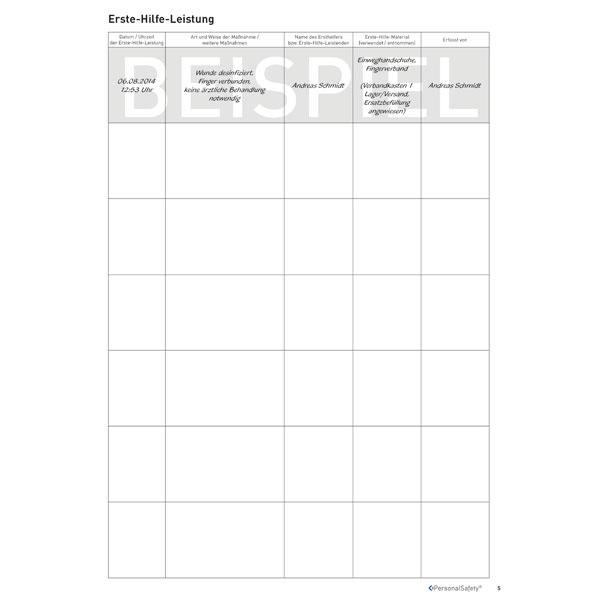 Nach der BGV A1 §24 Abs. 6 muss jede Erste-Hilfe-Leistung im Unternehmen aufgezeichnet werden.