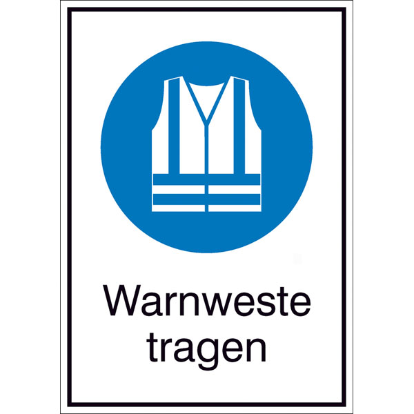 In Situationen, in denen Personen leicht übersehen werden können, sollte eine Warnweste getragen werden. Warnwesten können vor allem bei Arbeiten im Straßenbau und auch in anderen Gefahrensituationen Arbeitsunfälle vorbeugen. Sogar bei Dunkelheit sorgen Sicherheitswesten durch retroflektierende Elemente für eine bessere Sichtbarkeit von Personen. Das Kombischild Warnweste benutzen verringert die Unfallgefahr auf zweierlei Weise, da das Schild sowohl mit einem Piktogramm illustriert und einem Text versehen ist.