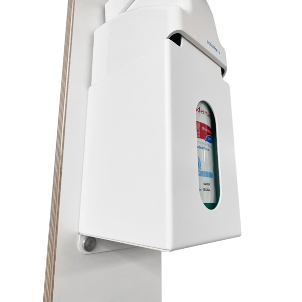 - Einsatz an Standorten, wo die Wandmontage eines Händedesinfektionsmittelspenders nicht möglich ist, z.B. in Eingangs- und Wartebereichen