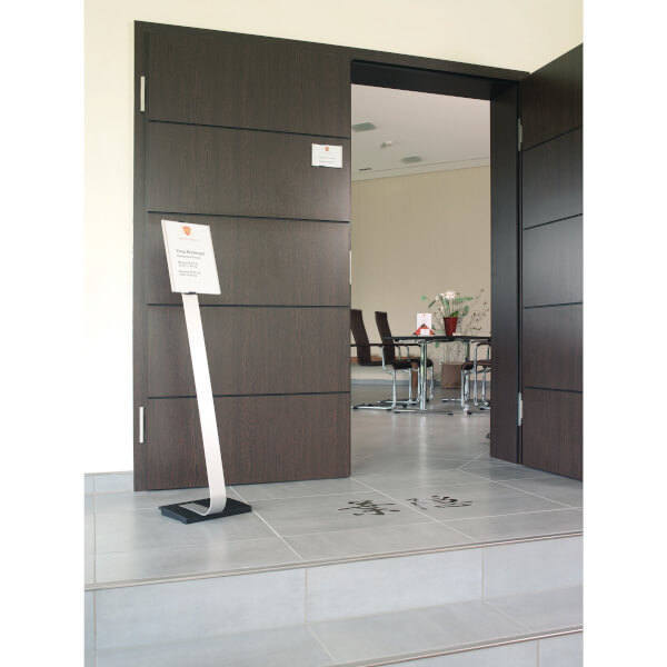 Durch den unkomplizierten Wechsel der Papiereinlagen wird der INFOSIGN Bodenaufsteller zu einem ausgezeichneten Informationsträger im Gebäude.