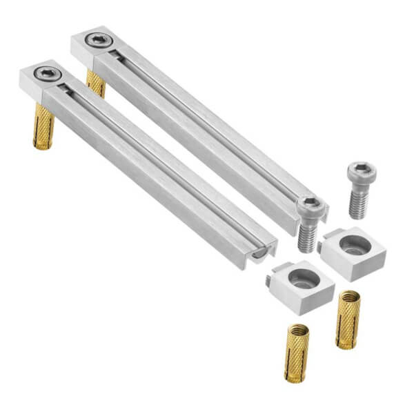 - 4 Edelstahlabschluss-Befestigungen und 4 Messing-Dübel inkl. Innensechskantschrauben