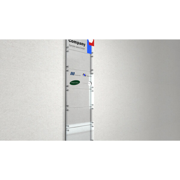 Das MyTrack Schienensystem eignet sich hervorragend für Büro- und Praxisumgebungen im Innebereich, da hier ein unproblematischer Austausch der Schilder erfolgen kann. Ebenso ist eine Erweiterung in Länge und Breite bei Zuwachs von Mietern problemlos möglich. Das MyTrack System kommt mit einem edlen hochwertigen Edelstahl Look daher, die Schienen sind aus Aluminium und die Halterung selbst aus Edelstahl. Zum Einsatz kommen können Schilder, aus verschiedensten Materialien, bevorzugt wird auf Grund der edlen Optik aber Glas eingesetzt.